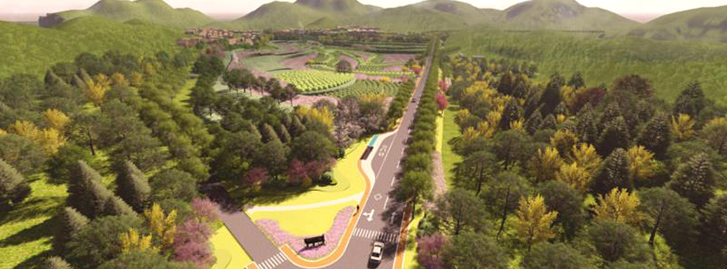 项目规划布局为“一心、二区、五点”,总体规划面积约10000亩,计划于2017年和2018年度分别施工。其中,“一心”即以即墨市东部的蓝谷核心区为中心,打造即墨东部的红叶景观中心;“二区”即以蓝谷核心区规划建设为依托,以温泉、鳌山卫现有山体生态旅游资源为基础,以远期建设发展集观光、旅游、度假为一体的综合性生态红叶景观为目标,打造东部蓝谷核心红叶景观体系的两个红叶风景旅游观光区,规划总面积约8000亩。